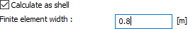 Calculate as shell/Finite element width ![]() Check this option to model the shearwall using the finite element method. It will be calculated by dividing the shearwall meshes by using the finite element width below. If the option is not selected, the shearwall will be modeled as a single piece of sheet. |