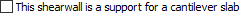 This shearwall is a support for a cantilever slab ![]() This option can be selected if the shearwall console is the support of a floor. Otherwise, it should not be marked. |