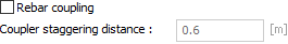 Rebar coupling ![]() This option is activated if it is wanted to make anchoring reinforcement attachment instead of the overlapped joint on the shearwall. The confounding value is entered in the staggering distance box for the coupling application. |