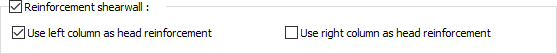 Reinforcement shearwall ![]() If the shearwall is reinforcement shearwall entered, this line should be marked. Use right and right columns as headings: If the columns on the right and left of the reinforcement shearwall are required to be accepted as headings for the reinforcement walls, the options are marked. |