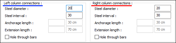 Steel diameter ![]() Reinforcement range values are entered for the relevant connection. |