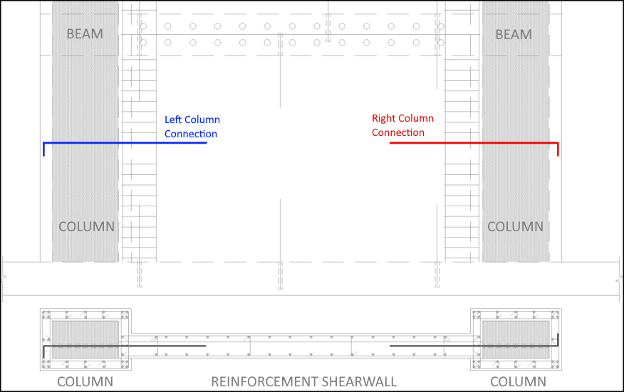 Main with trim ![]() By selecting the “Main with trim” option for main shearwalls, the connection type of shearwall rebar for the left and right ends of the shearwall is determined. An example of a connection of two basement shearwalls: ![]() An example of system shearwall and basement shearwall connection: ![]() |
