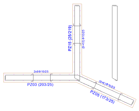 Main with extension ![]() By selecting the "Main with extension" option for main shearwalls, the connection type of shearwall rebar for the left and right ends of the shearwall is determined. An example of a connection of two basement shearwalls: ![]() An example of system shearwall and basement shearwall connection: ![]() |