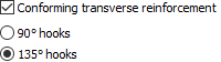 Conforming transverse reinforcement ![]() If there is transverse reinforcement at the upper and lower ends of the column belonging to the existing structure, this option is checked. Choose one of the 90 ° or 135 ° hooks options. |