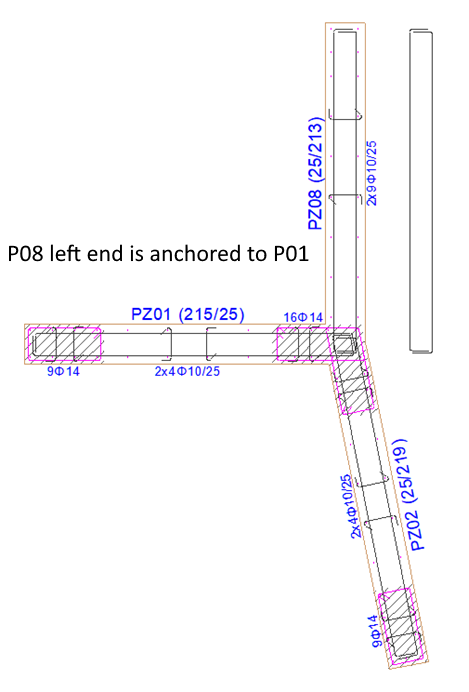 Use shearwall continuity at right end ![]() With this option, the shearwall horizontal rebars can be cut at the desired junction point, regardless of the 12m rebar length condition, and overlapped joints can be made or anchoring to the column can be provided. For shearwall P08, the continuous accept shearwall feature is active at the right end: ![]() For shearwall P08, the continuous accept shearwall feature at the right end is not active: ![]() For shearwall P08, the continuous accept shearwall feature is active at the right end: ![]() For shearwall P08, the continuous accept shearwall feature at the right end is not active: ![]() |