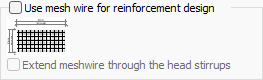 Use mesh reinforcement ![]() The use of mesh wire for reinforcement design is activated. If desired, the meshwire can be extended through the head stirrups. |