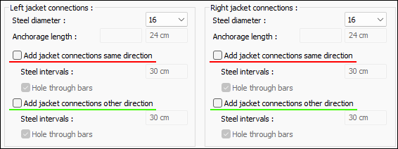 Add jacket connections other direction ![]() When the option is checked, jacket connections in the same direction are added. |