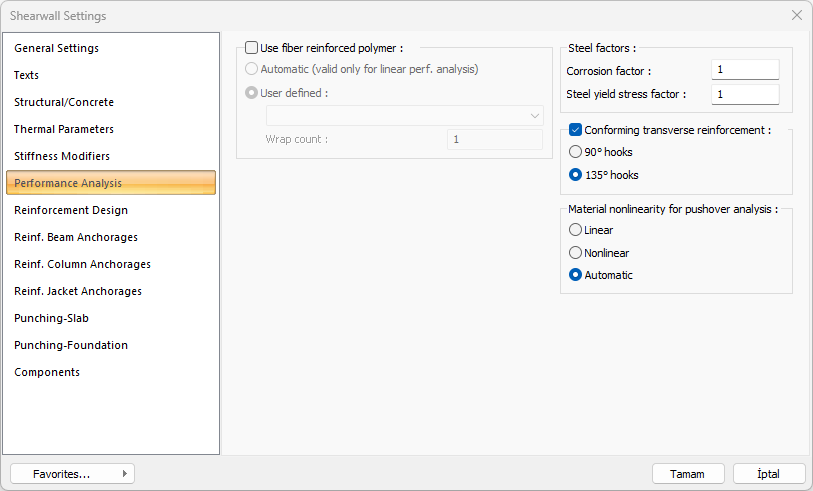 Corrosion factor ![]() It is a ratio used in building performance analysis. With the ratio written on this line, the wear occurring in the existing structures and reinforcements exposed to the corrosion conditions specified in the earthquake regulation can be taken into account in the performance calculation of the structure. The value defined in this row is multiplied with the existing reinforcement areas and the value found at the result of multiplication is considered as the reinforcement area. The mevcutal the yenial = multiplier * |