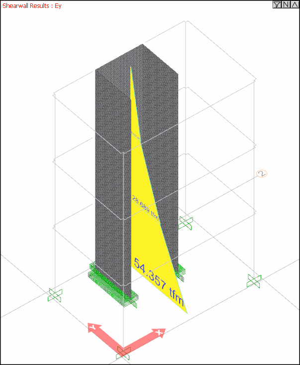 Component ![]() Normal force, shear force and moment values occurring inshearwalls are displayed for any selected combination in the element local axes. Earthquake loading Moment 3-3 diagram example for Shearwall Group ![]() |