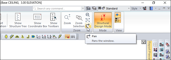 If the mouse is moved while the middle mouse button is pressed, the cursor changes and takes the shape of a hand, and the view shifts in the direction of mouse movement.