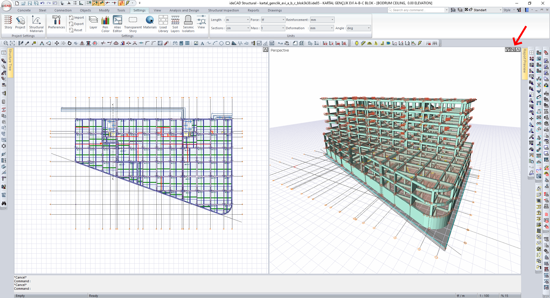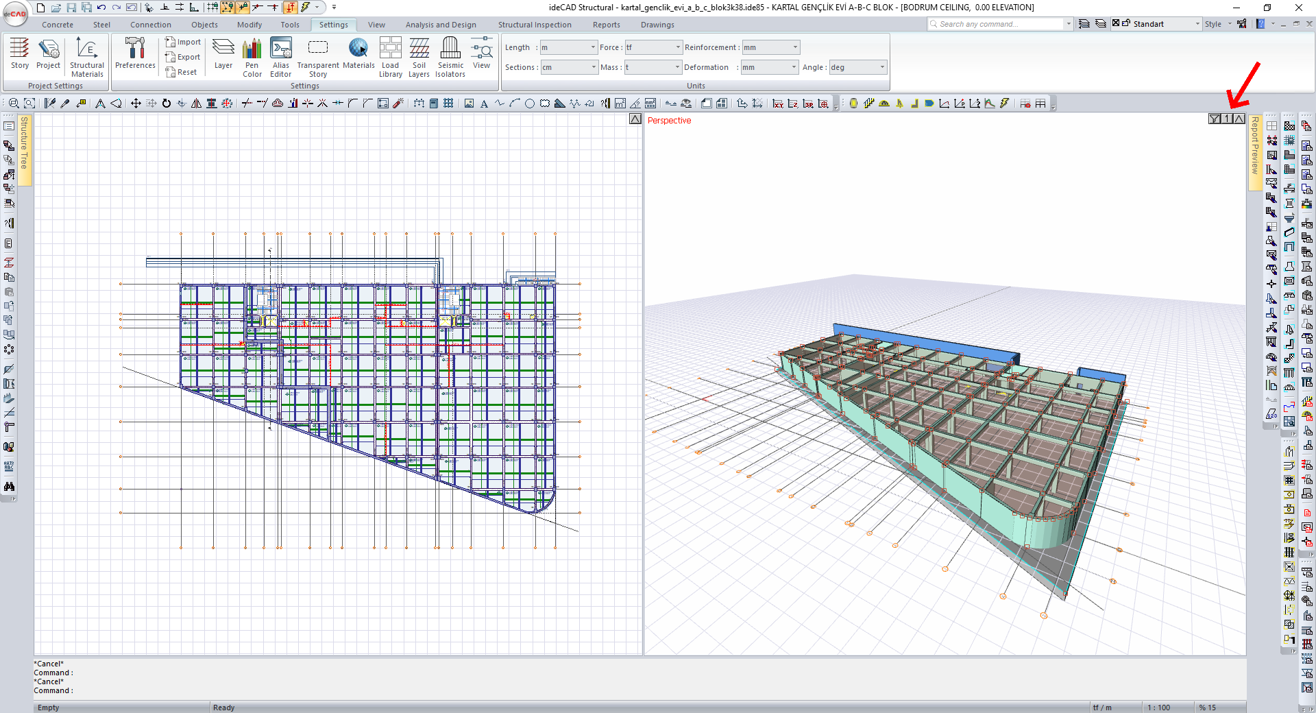 As the middle button is pressed from the buttons in the upper left corner of the perspective screen, it shows only the working story or all stories.