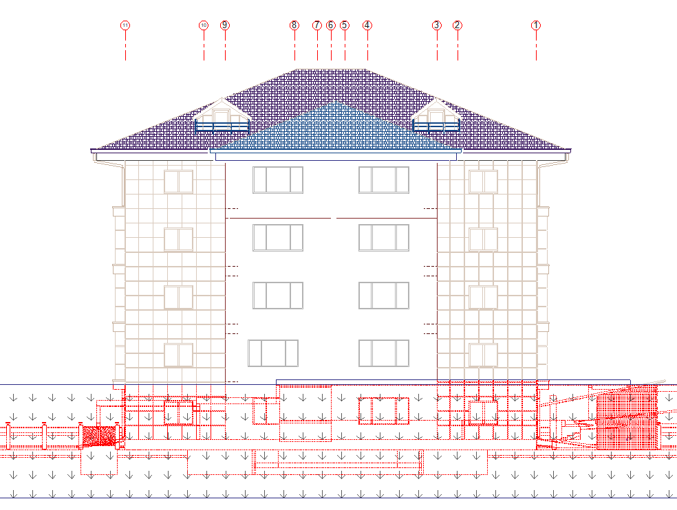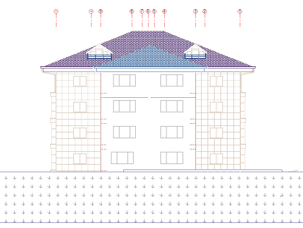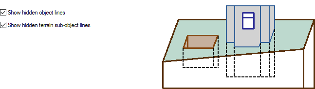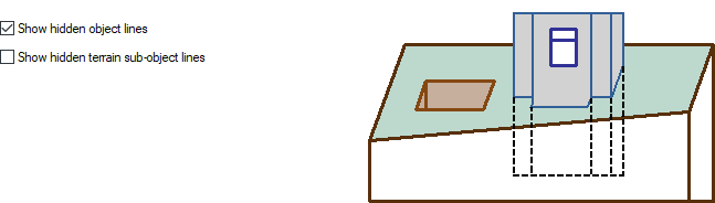 Show hidden object lines ![]() Draws the lines of the objects behind the terrain in the section or elevation with the selected linetype. |