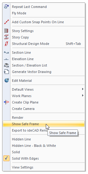 In the menu that opens, check the line for "Show Safe Frame" .