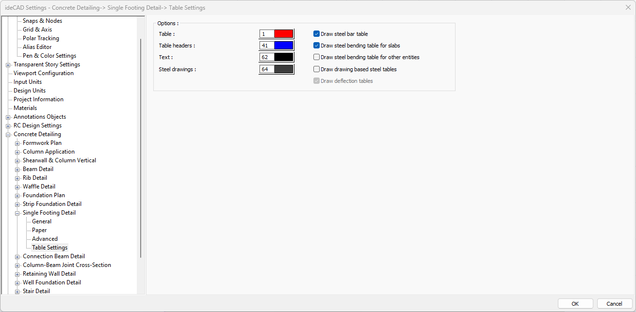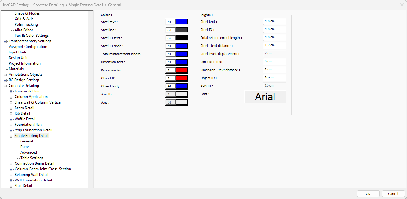 Colour, size, type, layout and table settings of the texts belonging to single footing details are arranged.
