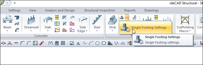 Location of the Single Footing Settings Dialog