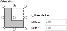 Orientation ![]() These are the options that determine the delta of the brace in the plan according to its axis. It provides adjustment of 9 different offset in the placement of the brace on the axis. Select the relevant option in the diagram shown according to the brace section or enter any numerical value in the user-defined section. |