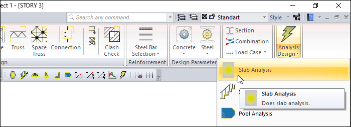 Click on the Slab analysis icon under the Analysis Design icon.