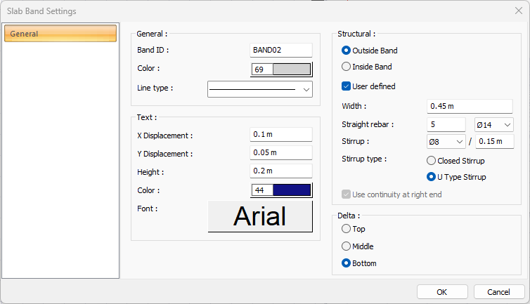Delta ![]() It determines the position of the slab band drawing line to be entered from the top, bottom or middle. While drawing the band, you can also specify the offset by pressing the spacebar on the keyboard. |