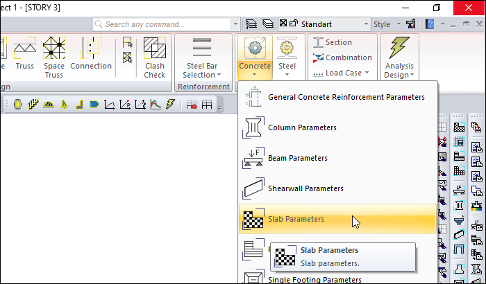 Ribbon menu Analysis and Design tab Design Parameters title under Slab parameters by clicking on the command Slab parameters can be found in the dialogue.
