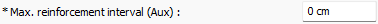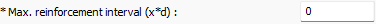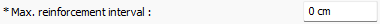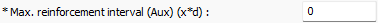 Max. reinforcement interval ![]() The distance between two rebars cannot be more than the value entered in this parameter. The maximum range of rebar is used together with the x * d parameter. In parameters marked with ( * ), the text 0 “zero” means that the value specified in the design code is used. |