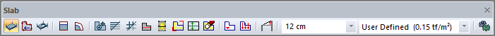 Slab toolbar that appears on the screen after the slab command is run, by clicking the Setting icon.