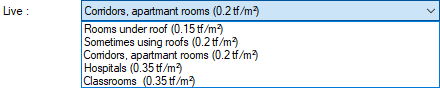 Live ![]() Select the appropriate value for live load from the list. The values that appear in the list are the values defined in the slab load library. If you are going to use another value instead of using one value in the list, select "user defined" from the list and enter a value. |