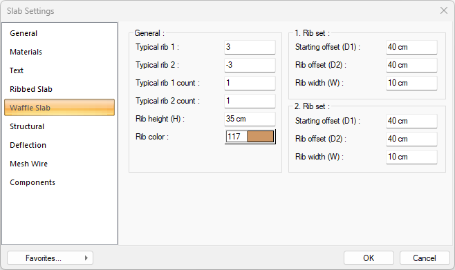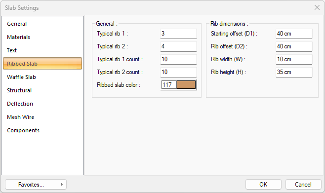 Ribbed slab color ![]() Select the color of the rib lines. |