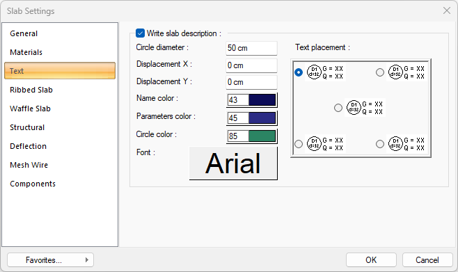 Text placement ![]() The location of the slab text on the slab is chosen. |