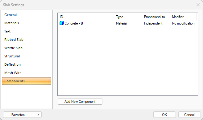 Use composite material ![]() Composite materials allow the slab to be drawn in a different material view in cross-section. If checked, it allows the use of materials defined in the "Composite Material" editor. After the row is marked, one of the composite materials in the list below is selected with the left mouse button. Changes the appearance of the slab in section according to the selected composite material. |