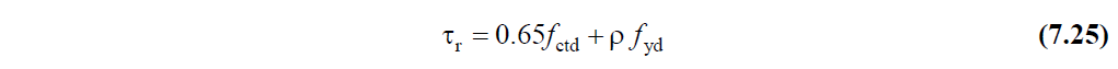 that will be placed in the direction slab reinforcement ratio, f yd design yield stress of slab reinforcement and f ctd concrete design tensile strength, including horizontal shear stress in the plane of laying TBDY It shall not exceed the limit value given by Equation 7.25 .