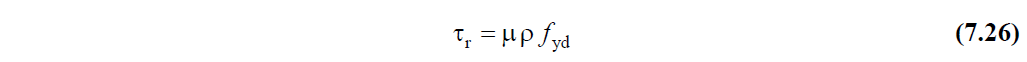 The in-plane shear stresses that occur between the floor and the curtain will not exceed the in-plane shear friction strength at these sections. The shear friction strength shall be calculated in terms of stress by Equation (7.26) with the remaining slab reinforcement ratio ρ, which is stuck to the wall and whose clamping length is sufficient and required for bending strength .