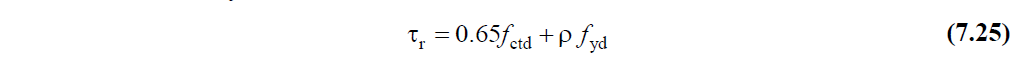 In this calculation, ρ is the ratio of the slab reinforcement that is left over from what is required for bending strength and will be placed in a parallel direction to the shear stress. The shear stress occurring in the plane shall not exceed 0.65 (f ck ) 1/2 limit.