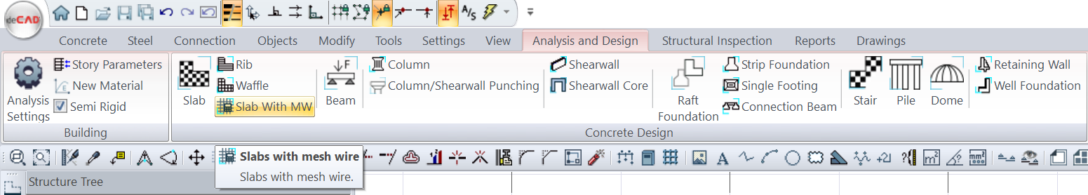 After the analysis, you can access it by clicking the Wire Mesh Reinforced Flooring command under the ribbon menu Analysis and Design tab, Reinforced Concrete Design heading .