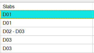Slabs ![]() The names of the slabs attached to the relevant support are given. |