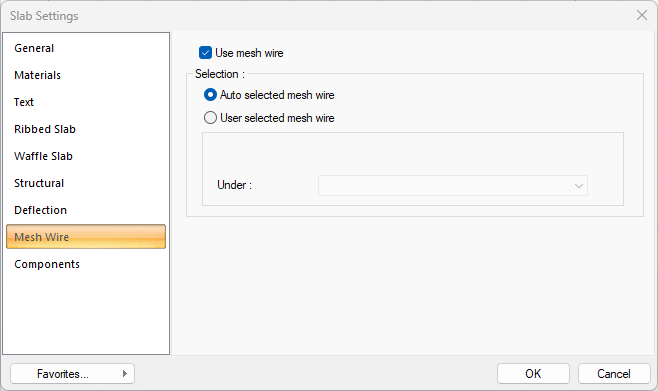In order to see the design results in the Slabs With Mesh Wire dialog, the Use mesh wire option in the Mesh Wire tab of the Slab Settings window must be checked.