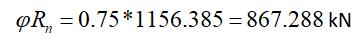 281.974 kN | 867,285 kN | 0.325 | √ |