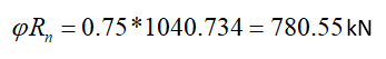 281.974 kN | 780.55 kN | 0.361 | √ |