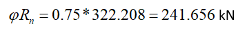 315,683 kN | 1234,402 kN | 0.256 | √ |