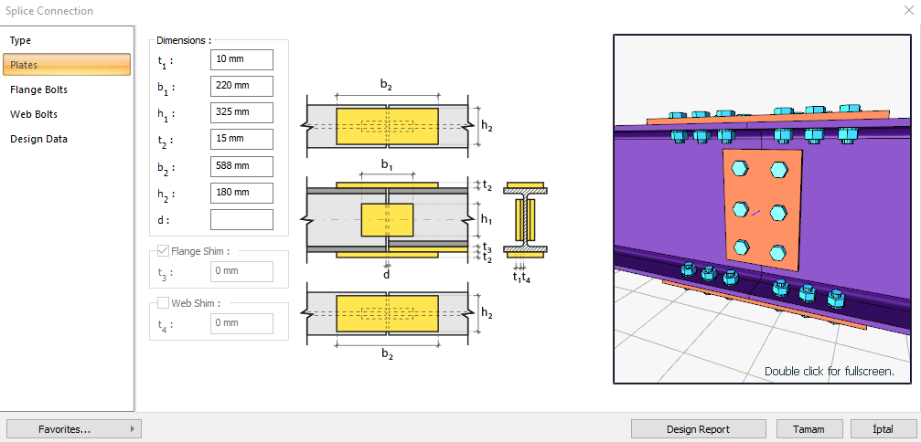 A splice connection design is a moment-transmitting connection formed by bolted or welded connecting plates of beam caps and bodies. It can be used as a beam attachment or column attachment. Bolt control, welding control, and plate control are made automatically according to the placement of the connection elements.