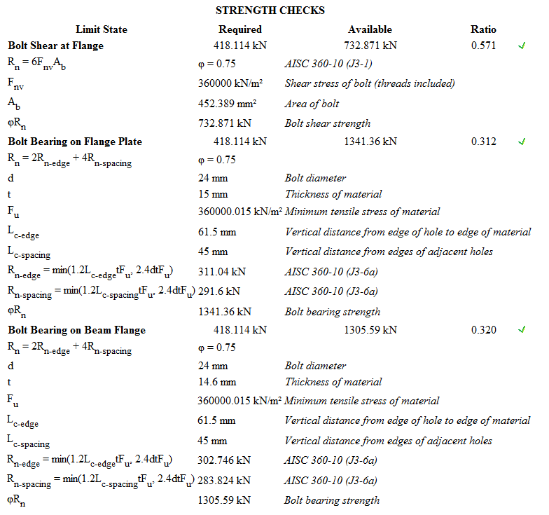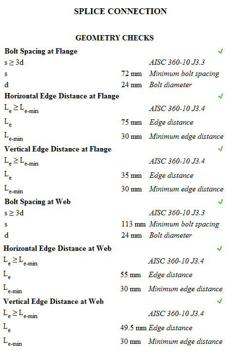 Splice connection design is made automatically according to the Design, Calculation and Construction Principles of Steel Structures (ÇYTHYEDY) , AISC 360-16, and a connection report is created.