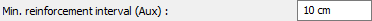 Min. reinforcement interval (Aux) ![]() It is the parameter that limits the minimum distance between additional rebars. This parameter is taken into account when selecting additional rebar. If the distance between two additional rebars is less than the minimum rebar spacing, the rebar diameter is increased. |