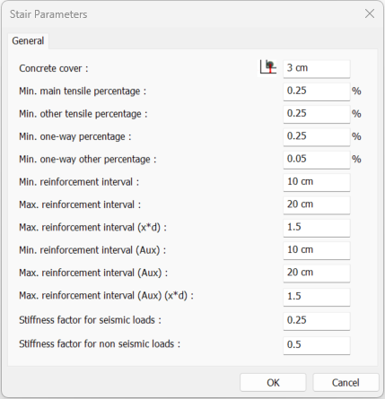 Stiffness factor for seismic loads ![]() It is the parameter that determines the stiffness factor for earthquake loading in stairs. |