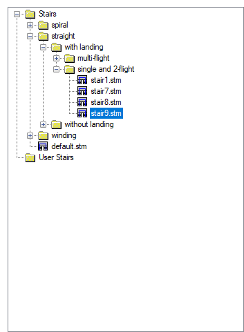 Type list ![]() The stairs are organized under folders according to their types. The staircase to be drawn is selected under these folders. |