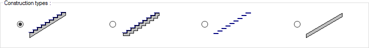 Construction types ![]() One of the straight, folded, bridge board and ramp type stair systems is selected by clicking with the left mouse button. |
