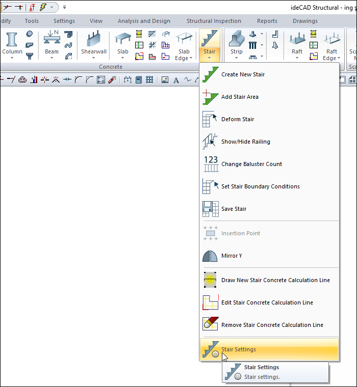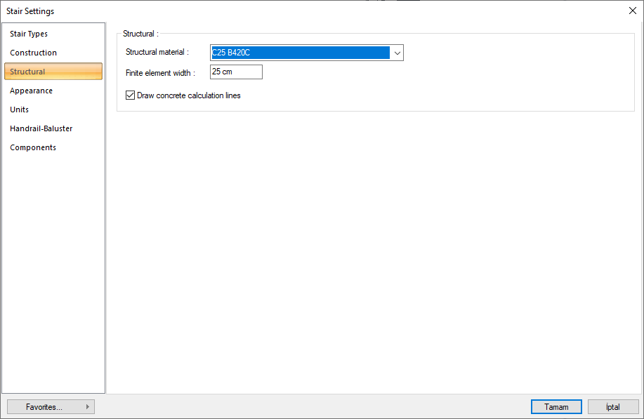 Structural material ![]() Select the structual material to be used in the stair element from the list. |