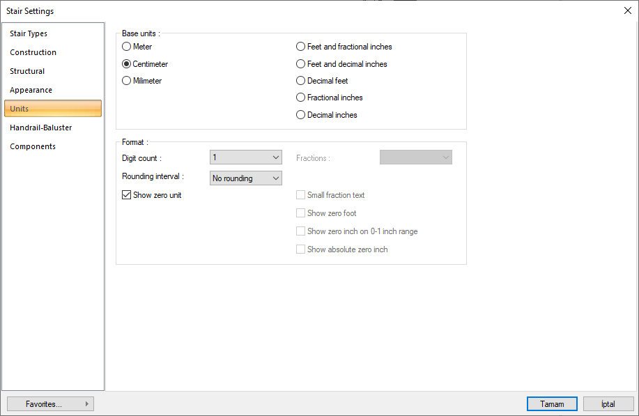 Fractions ![]() It determines the precision of the dimension to be made in fractional inch format. In the list, there are options with a sensitivity of 1/2, ¼, 1/8, 1/16, 1/32, 1/34. If "no fraction" is selected, units will appear without fractions. |