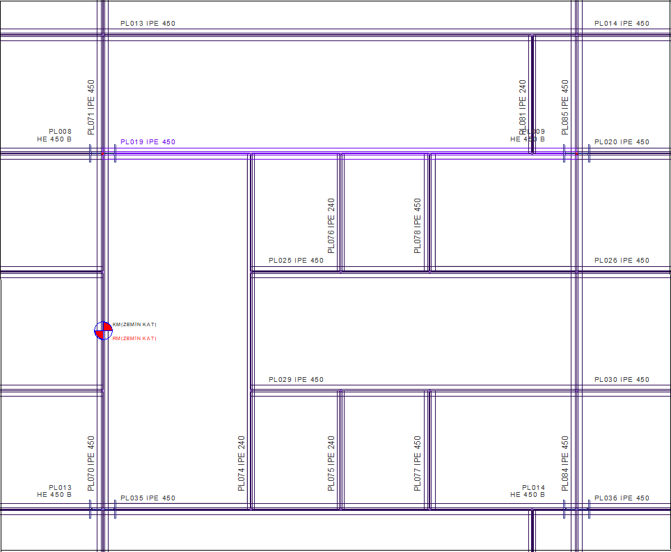 Design strength check of the steel beam named PL019 is done under the most unfavorable internal forces as a result of general analysis determined according to TBDY 2018 9.3.1.4. The material and section information of the beam is as follows: