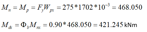 While checking the beam design flexural moment strength, since the lateral supported lengths are different, station-by-station should be done for each section. For the convenience of manual check, it will be done for the section Lb = 0.75 m, which is exposed to the most unfavorable flexural moment.