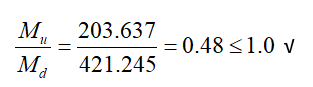 Because of the condition, the characteristic of flexural moment strength is determined according to yield limit condition. According to the CYTHYE equation 9.2, the check is done as follows: