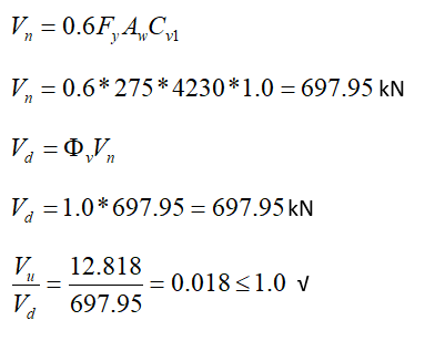 With the load combination Q-Ex-0.3ey + 1.2G + 0.2S + 0.3ez, required shear force is determined as Vu = 12818 kN. It has been shown above that the cross-sectional capacity is sufficient.